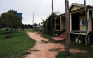 Dorfbesuch – Ganz in der Nähe liegt das Hauptdorf Nossa Senhora do Perpétuo Socorro mit seinen 230 Einwohnern. Hier gibt es Kautschuk- und Paranussbäume zu bestaunen und unzählige Webervögel wohnen seit Jahren am Ortseingang. Die Dorfbesichtigung endet bei Marlene, die als Ortskrankenschwester für die Erste Hilfe Station verantwortlich ist. Einer Besichtigung ist nichts hingegen zu setzen. Marlenes Familie stellt Handarbeiten her, unter anderem auch interessante Holzarbeiten, die im Laden verkauft werden und auf der Terrasse kann man bei einem kühlen Drink etwas ausruhen. Wer Lust hat kann am Nachmittag mit den einheimischen Jungs Fußball spielen oder mit ein paar Mädchen Volleyball. Oder wie wäre es mit "Blasrohr schießen" ???
